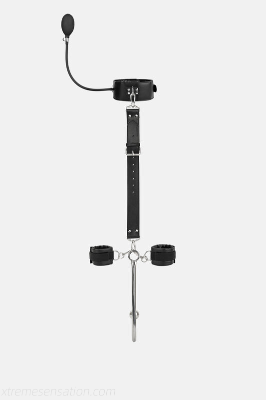 The BreathTaker Full-Body Restraint Kit offers a comprehensive set of bondage accessories designed to integrate seamlessly with the BreathTaker Inflatable Collar. This kit includes an adjustable back strap, padded wrist cuffs, and a stainless-steel anal hook, crafted to provide secure and comfortable restraint for the wearer. Each component features durable materials and adjustable fittings to suit a variety of body sizes and play styles. The padded cuffs ensure comfort during extended sessions, while the stainless-steel anal hook adds an element of intensity and control. Easily attachable to the collar’s D-ring, this restraint kit transforms the collar into a versatile system for dynamic full-body bondage experiences. Ideal for those exploring head-to-toe submission, the kit balances functionality and comfort without compromising style. This all-in-one set is perfect for enhancing restraint play, appealing to players seeking both sophistication and practicality in their bondage accessories.
